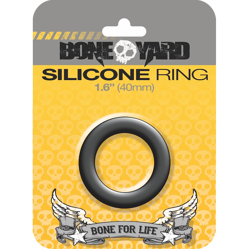 Boneyard Silicone Ring 1.6″ (40mm) Black These must-have man toys are designed with superior materials and production thus increasing both comfort and lifespan. The powerful and iconic Boneyard-branded design has a sleek silicone finish and features a superior and durable 3x-stretch. The soft medical grade 100% silicone rings and non-roll design provide a snug fit that both the wearer and his playmates will appreciate. Unique to themselves, these rings synergize with the wearer, providing endless comfort when wearing under your jeans. You can be assured that they will withstand the punishment of your longest play sessions time and time again.