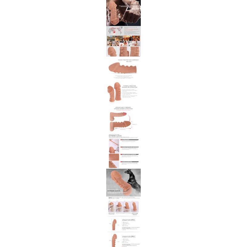 Designed to extend the size of the penis, delay ejaculation time and enhance satisfaction for the female.