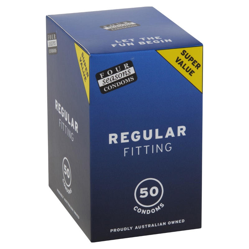Super value pack Four Seasons regular fitting condoms 50 pieces.
